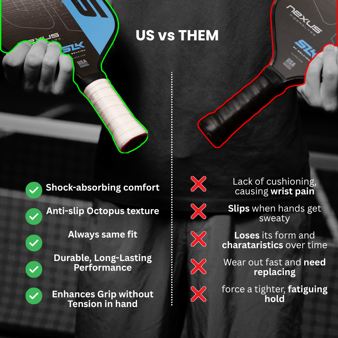 RocketGrip Octopus Undergrip is made for pickleball players who demand comfort, control, and joint-friendly performance – every time they step onto the court.