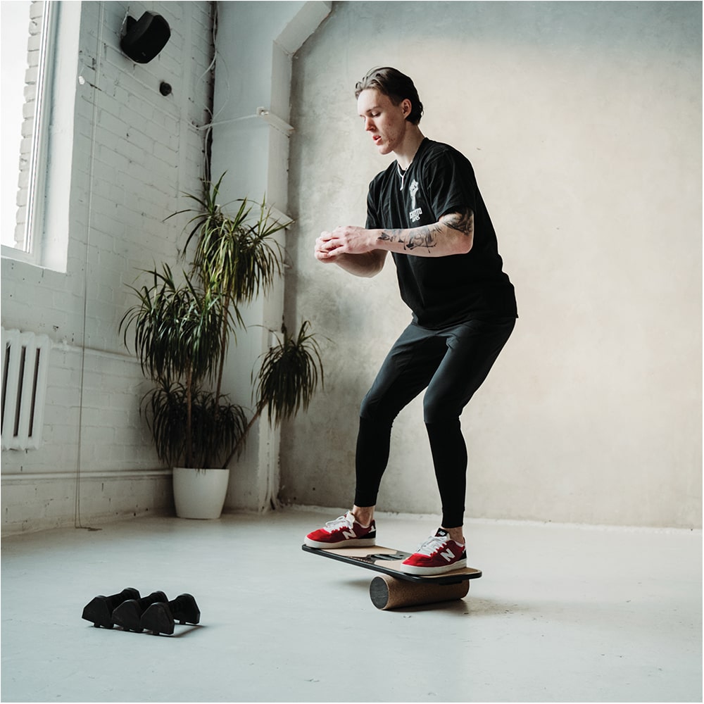 Always ensure that you have a stable and safe surface to use the balance board. Start with easier variations and progress to more challenging exercises as your balance and strength improve. Remember to maintain proper form and engage your core for each exercise.